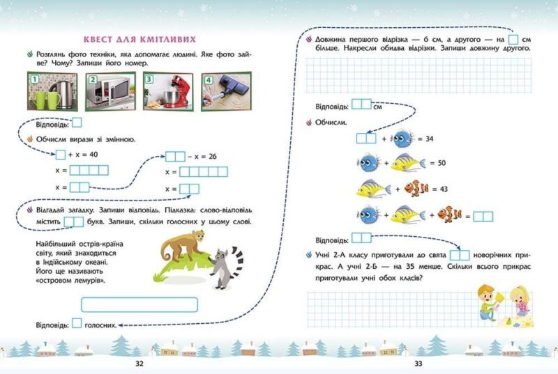 Книга Зимові розумашки. 2 класс (квести, математика, логіка, англійська) (українською)