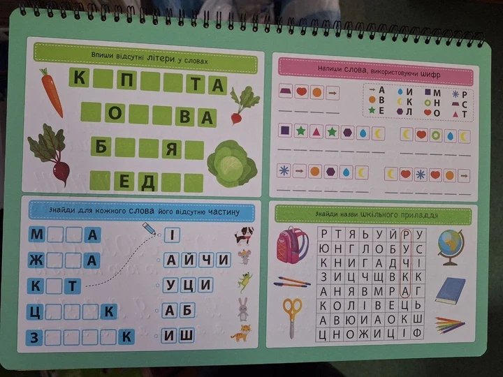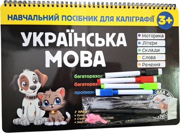 Навчальний посібник для каліграфії «Українська мова» (3+) — це інноваційний тренажер, створений для того, щоб перше знайомство малюка з рідною абеткою було легким та результативним. Завдяки продуманому формату багаторазових прописів, дитина може опановувати основи листа без страху допустити помилку. Спеціальне покриття сторінок дозволяє безліч разів стирати написане та повертатися до упражнень, що перетворює навчання на захопливий процес удосконалення власних навичок. Головним перевагою посібника є його орієнтованість на розвиток дрібної моторики та координації рухів. Прописування окремих літер, складів, а згодом і цілих речей допомагає зміцнити м’язи кисті та підготувати руку до серйозних шкільних навантажень. Спіральний перепліт додає зручності у використанні: книга легко розгортається на 180 градусів, забезпечуючи комфортне положення руки під час листа на будь-якій сторінці. Комплектація видання робить процес навчання по-справжньому сучасним та інтерактивним. Використання маркерів «Пиши — Стирай» чотирьох яскравих кольорів дозволяє малюкові експериментувати та миттєво виправляти помарки. Особливої уваги заслуговують «чарівні чорнила»: написане ними поступово зникає саме собою, що стимулює дитину повторювати вправи знову і знову, доводячи написання букв до автоматизму та формуючи правильний почерк.