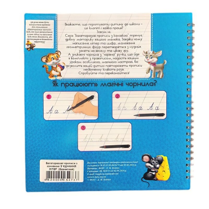 Багаторазові прописи створені для дітей, які вивчають українську мову. З ними вам буде зовсім не важко навчитися писати літери, а розробка дрібної моторики руки вашого малюка перетвориться на веселі та цікаві заняття. До прописів також додається ручка зі зникаючими чорнилами, яка забезпечить нескінченну багаторазовість прописів та внесе трохи чарівництва та дива у ваші уроки.