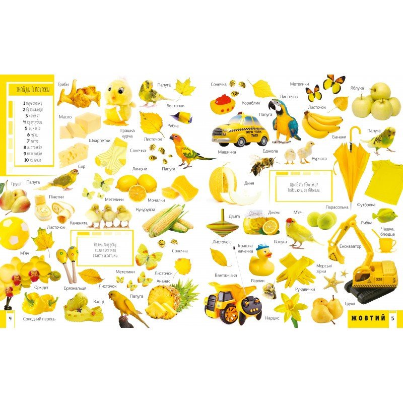 Перед Вами унікальне видання “Вивчаємо кольори. 500 перших слів: розвиваємо увагу” Жученко Марія, яке познайомить Вашого малюка з основними кольорами. Яскраві картинки зможуть утримати увагу маленького читача та розвинути його уяву. Дитина побачити різноманітні предмети з повсякдення, фрукти, овочі, квіти, неймовірних тварин. На кожному розвороті вона знайде завдання знайти і показати їх певну кількість, завдяки чому навчитися рахувати до десяти. Крім того, якщо Ваш малюк трішки підріс і вчитиметься читати, книжка теж стане у пригоді, адже в ній він прочитає більше п’ятисот слів!