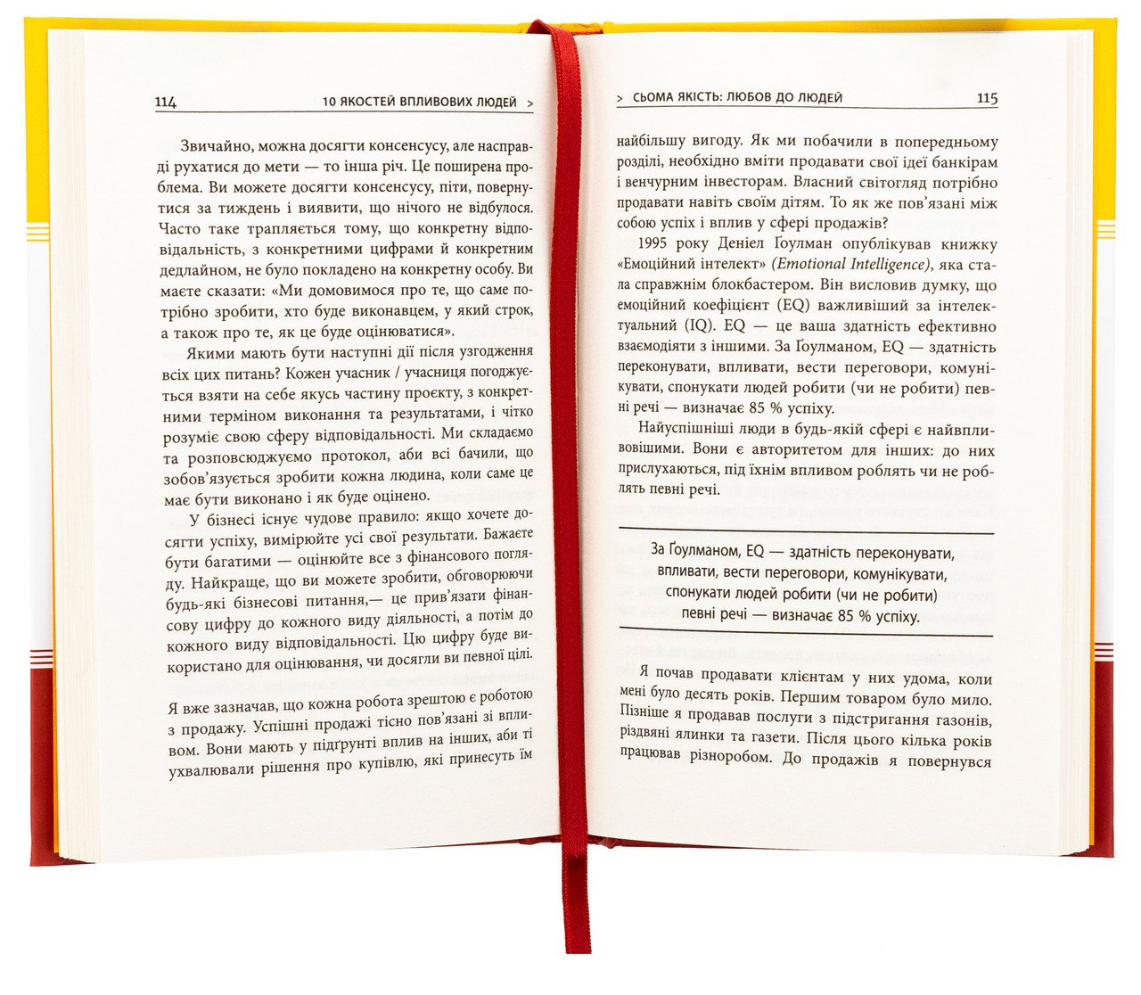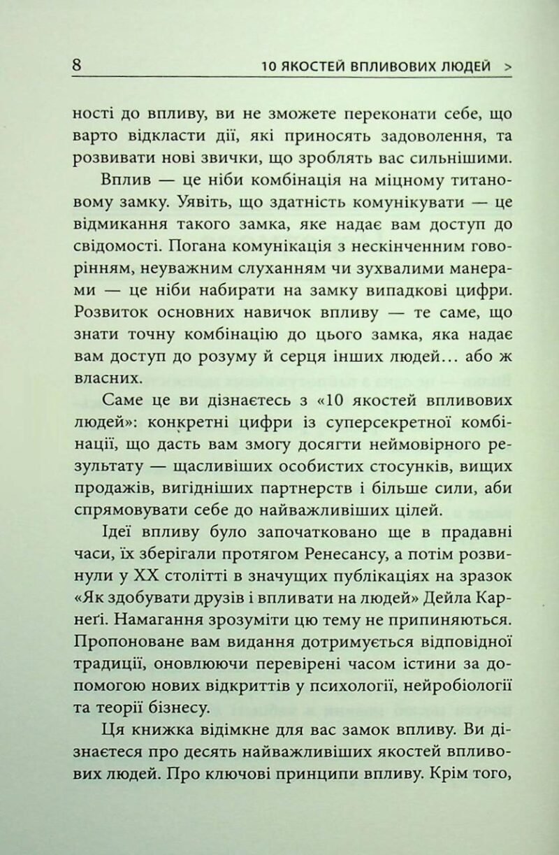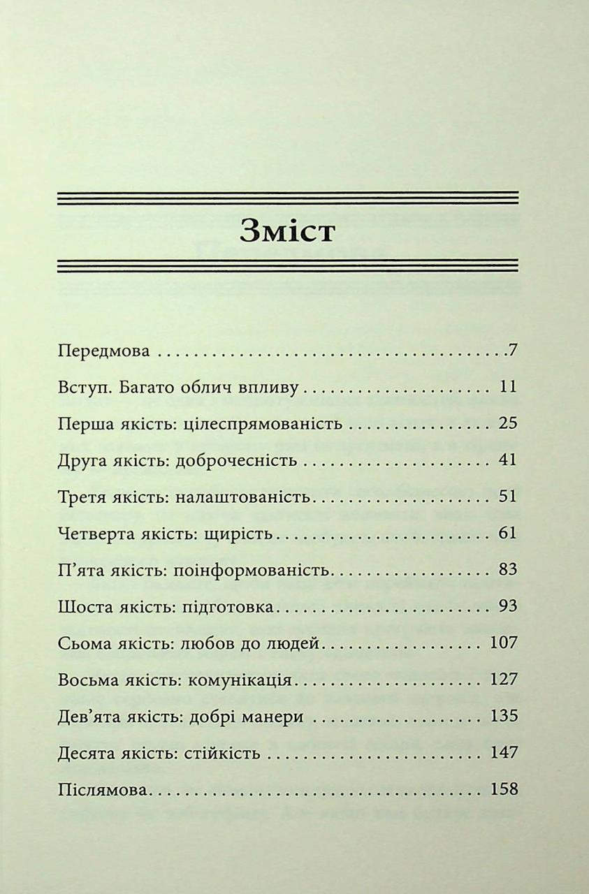 Як стати впливовим? Як навчитися переконувати собі та інших? Як зробити так, щоб люди були відкритими до вашого впливу та захотіли йому піддатися? Автор багатьох бестселерів і всесвітньо відомий мотиваційний оратор Браян Трейсі поділиться секретами, що допоможуть вам спрямовувати собі до найважливіших цілей, змінювати власну життя і досягати неймовірних результатів як у індивідуальних відносинах, так і у різноманітних сферах діяльності.