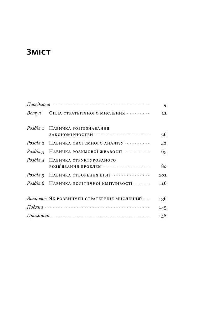 Прагнете керувати бізнесом — вмійте стратегічно мислити і втілювати ідеї у життя. Можна розробити найкращу у світі стратегію, але якщо люди не розуміють, нащо всі ці зусилля і куди вони ведуть, вона марна. Майкл Воткінс крок за кроком показує, як набути і використовувати ці навички на практиці. Ця книга покращить ваші уміння розпізнавати нові виклики та згуртувати свою організацію для проактивних дій. Аналізуючи реальні успіхи та невдачі топ-менеджерів світових корпорацій, ви навчитеся виявляти закономірності, створювати візію, яка надихатиме, а головне — впевнено впливати на людей. В умовах жорсткого та мінливого світу автор пропонує опанувати цілком досяжну здатність спрогнозувати майбутнє та ефективно до нього підготуватися.