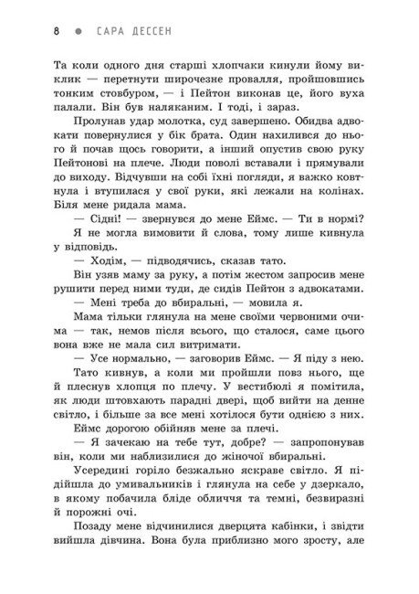 Поряд зі старшим братом Пейтоном Сідні завжди відчувала себе невидимкою. Не дивно, він харизматичний, привабливий та безстрашний. Та віднедавна схильний втрапляти в халепу. Останньою стала аварія: сівши за руль у нетверезому стані, Пейтон збив хлопця і тепер відбуває наказання у в’язниці. Поки мати надто переймається життям брата за ґратами, Сідні знову не може знайти підтримки у батьків, якої так потребує. Маючи бажання втекти від хаосу в домі, дівчина знайомиться з Лейлою та її дружною сім’єю. Перебуваючи із Чатемами, Сідні нарешті може бути собою, ділитися почуттями і, головне, вийти з тіні брата. Та чи зможе дівчина стати «побаченою» і у власній батьківщині? Від авторки бестселерів New York Times; понад 15 романів для підлітків, п’ять з яких отримали відзнаку за внесок у молодіжну літературу; романи екранізують