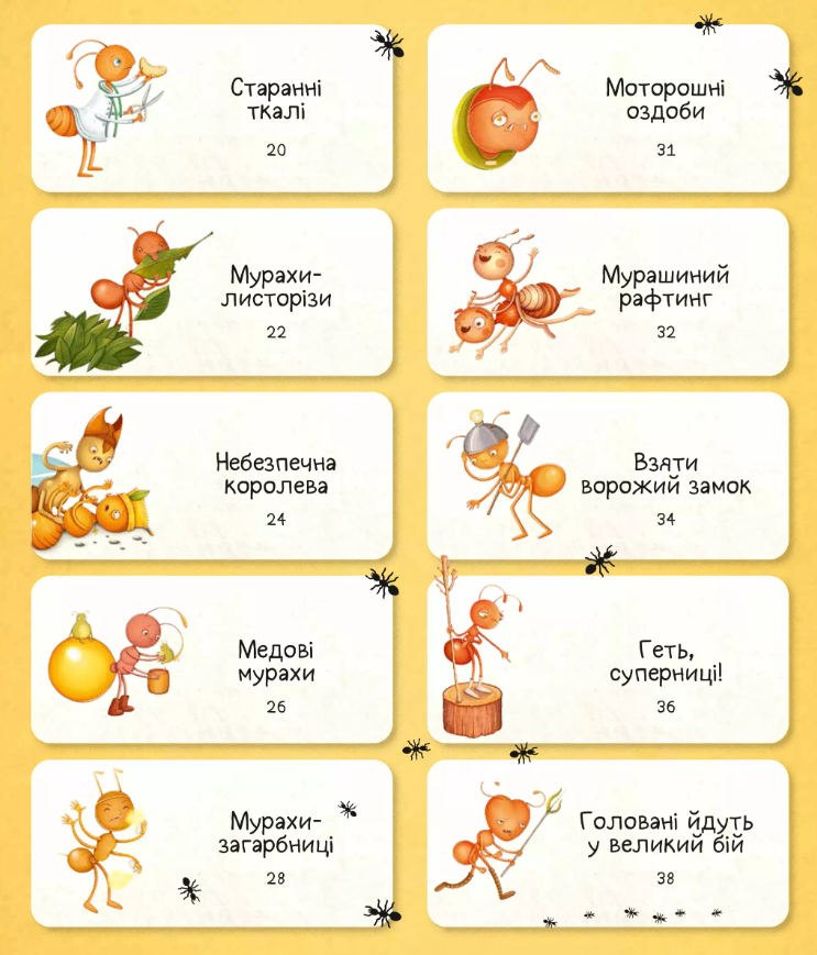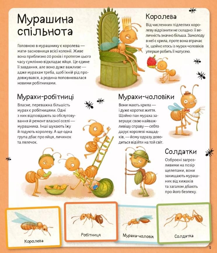 Що ви знаєте про мурах? Що це маленькі трудівники, які споруджують великі фортеці? Чи можуть вони чимось вразити, га? Можуть! Насправді світ мурах дивовижний, і туди, безперечно, варто заглянути. Мішкають там і страхітливі кровожерливі воячки, і мисливиці за головами, і майстрині, які вправно зрізають листя, тчуть, розводять попелиць тощо. А дехто з місцевих промишляє тим, що вдирається до чужих помешкань і обкрадає їх. Усі як у людей, чи не так? То дізнаємося про мурах більше!