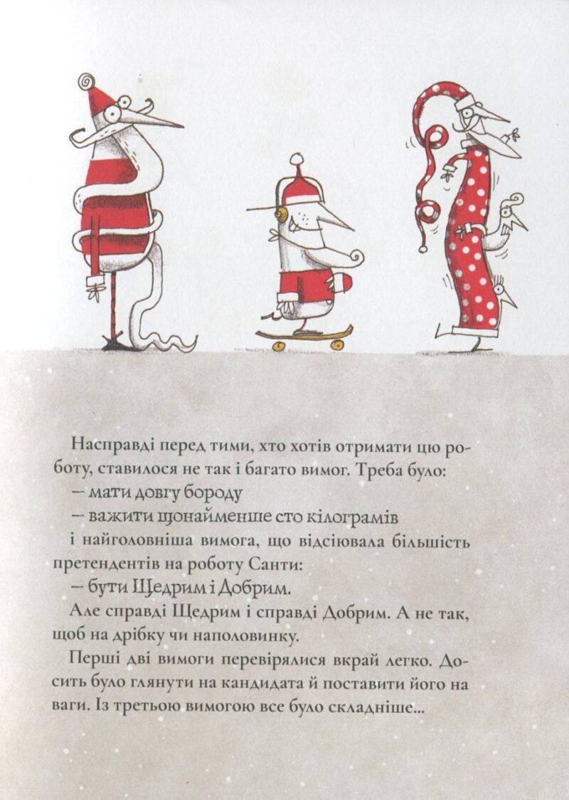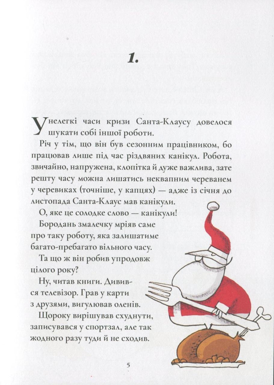 Захоплива та весела книга про цікаве життя Санті «Таємна робота Санта-Клауса» створить яскраву святкову атмосферу, а також подарує лише теплі враження від прочитання. Історія знайомити нас з милім Сантою, який понад усе любить свою професію. Та одного дня його звільняють. Куди тепер податися Санта-Клаусу? Він не втрачає надії та пробує собі у ролі офіціанта, аніматора та, навіть, співробітника call-центру. На жаль, такі заняття йому геть не підходять. І чи взагалі існує ще така робота, де він зможе ощасливлювати дітей?! Існує! Яка сама? Дізнайтеся з книги. Забавна та активна історія з нотками зворушливості у книжці Мікеле Д іньяціо «Таємна робота Санта-Клауса» доповнена забавними ілюстраціями Серджіо Олівотті, які тонко підкреслюють оригінальність сюжету. Книга легко читається і здатна підняти настрій не лише дітям, а й дорослим. Насолоджуйтесь неймовірними пригодами Санті та незабутньо проводьте годину!