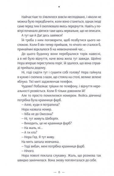 Нора з батьківщиною переселяється в інше приміщення, і з часом у ньому починають діятись химерні речі. Спочатку дівчина думає, що це характерно для старих будинків — видавати дивні звуки. Але зовсім скоро вона упевнюється, що таємничі кроки в домі їй не вчуваються. До того ж раптові втечі пса Патланя, загадкові телефонні дзвінки, містичні послання, які ніби диктує Норі всесвіт, — усе так і підштовхує дівчину крок за кроком розгадувати таємниці старого дому, а водночас — і сімейні таємниці… Невже загадка старого дому допоможе Норі почуватися не такою самотньою.
