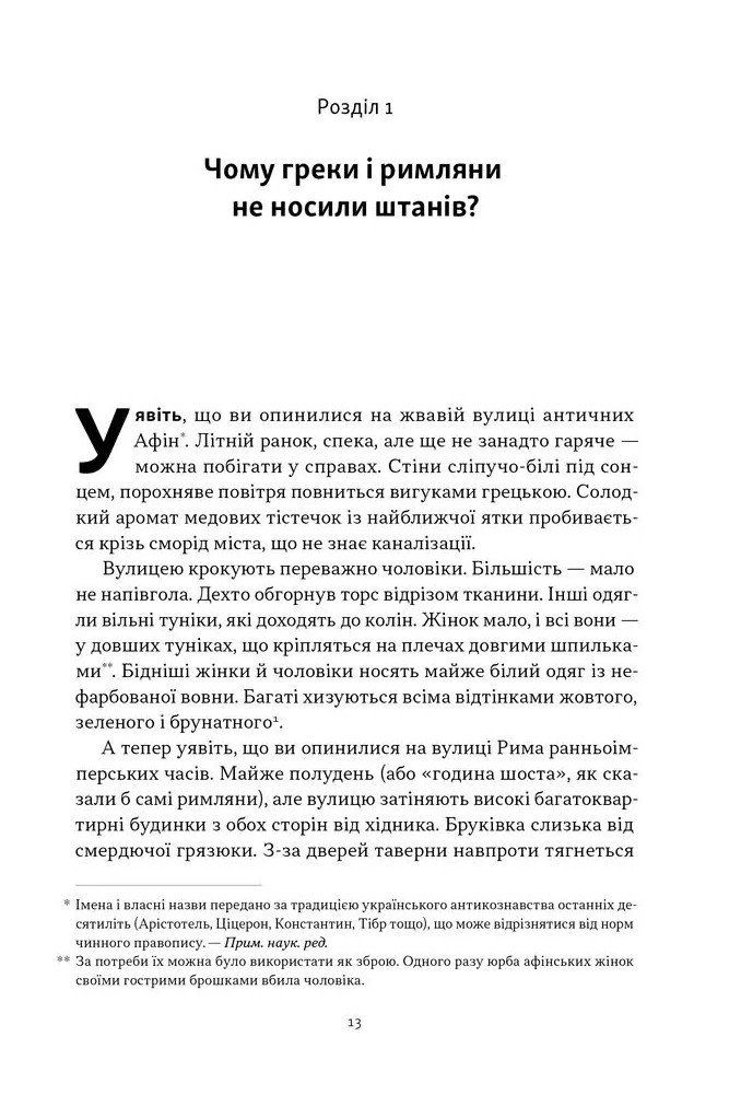 Ґаррет Раян пропонує подивитись на стародавній світ через призму побутових дрібниць та несподіваних фактів. Ви дізнаєтеся, чому греки принципово ігнорували штани та нащо додавали мармуровий порошок у вино. Автор розповідає про специфічну дієту гладіаторів та шалені гонорари тогочасних зірок спорту. Ця книжка відповідає на найдивовижніші запитання про життя римлян та еллінів. Тут немає нудних дат чи сухих описів битв. Натомість читач знайде інформацію про віяння моди на бороді та секрети військової медицини. Це захопливе чтиво для тих, хто хоче знати все про реальну життя за години «Іліади» та розквіту імперій.