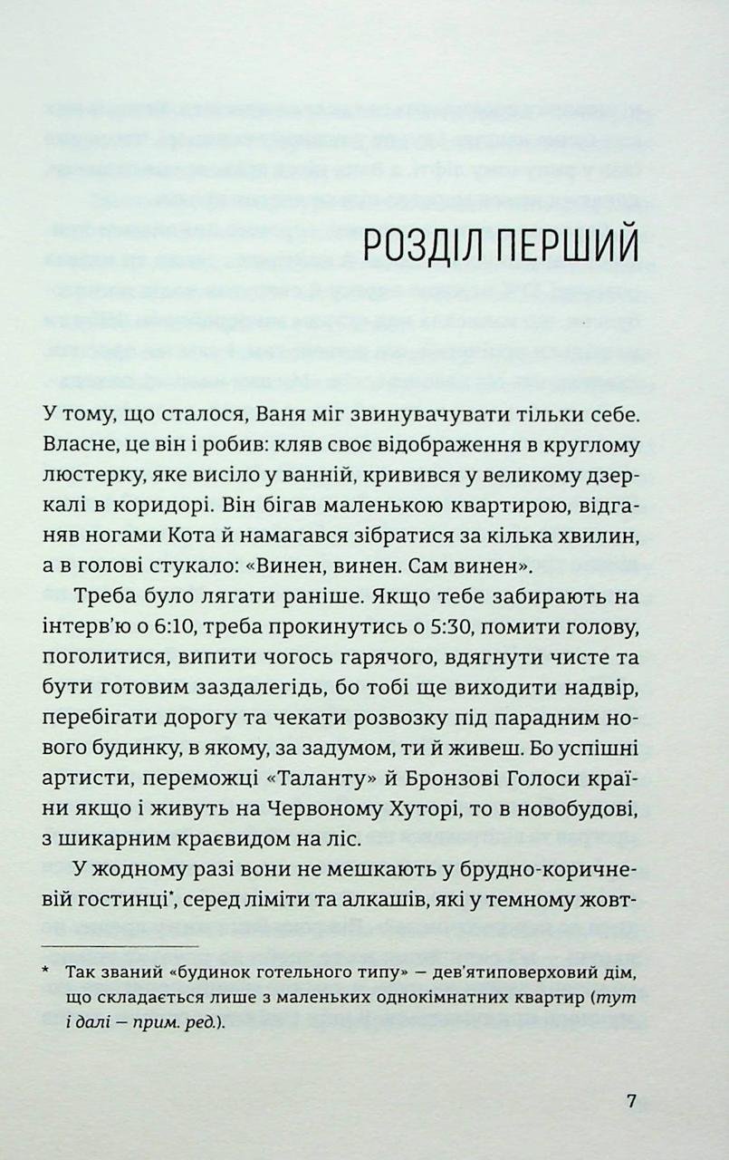 Він мріяв співати. А його змусили грати роль. Перемога у пісенному конкурсі мала стати квитоком у нове життя для Івана Майбороді. І вона ним стала, але маршрут виявився зовсім не таким, як він собі уявляв. Замість творчої свободи – диктат продюсера. Замість любові фанів — інтриги за кулями. Як не занапастити собі, коли тобі намагаються переліпити за стандартами ринку? Як зберегти відносини, коли робота вимагає повної віддачі? Іван опиняється перед вибором, який змінитиме все. Ця книга — погляд зсередини на «фабрику зірок», де виживає не найталановитіший, а найстійкіший. Іноді найважливіша перемога — це вчасно сказати «ні».
