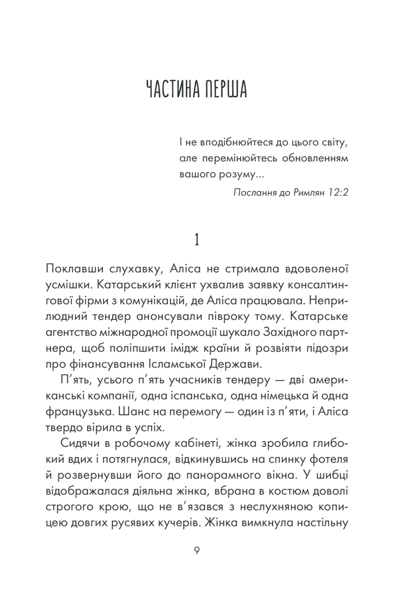 Час заплющити очі, щоб нарешті побачити! Аліса ніколи не була богобоязною парафіянкою, що молилася, перш ніж з’їсти пиріжок. А для священика Жеремі віра була повітрям, сенсом існування. Та парафіян у церкви всього дванадцять, як тих апостолів. І практична атеїстка Аліса вирішує допомогти старому другу покращити ці показники. Для неї це просто черговий проект, який треба розкрутити. Але заглиблюючись у світ духовного, Аліса відчуває, як щось у ній починає змінюватися. Тісні стіни скептицизму та іронії, що здавалися їй справжньою свободою, поступово розсуваються. Здається, ще крок — і Алісі відкриється істина, яку вона вперто не хотіла помічати. Але всесвіт навколо раптом стане незміряним. І не занапаститися в ньому лише той, хто зрозуміє, чого хоче насправді.