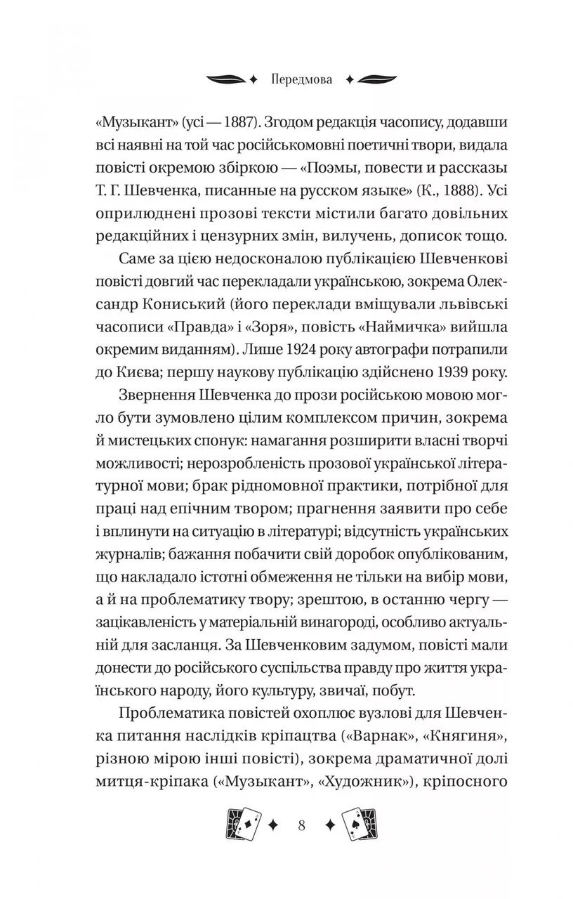 Зворушлива історія наймички, яка до кінця життя не могла зізнатися у своєму материнстві, відверта сповідь колишнього каторжника Кирила, моторошні сільські бувальщини та драматична доля княгині Катрусі — три перші Шевченкові повісті по-новому розкривають нам світ людини першої половини ХІХ століття, її переживання та змагання. Блискучі переклали на українській мові знаних майстрів слова Бориса Антоненка-Давидовича та Віктора Сапіцького ніби наближають Шевченка до нашої години: його герої та героїні живуть, кохають, страждають і борються, як ми сьогодні