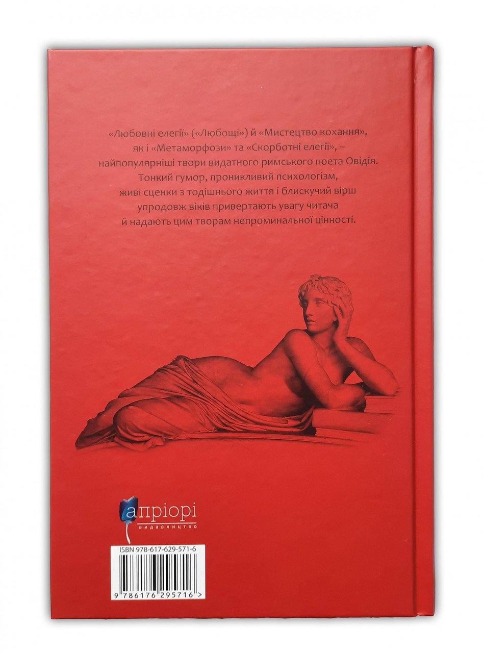 «Любовні елегії», «Мистецтво кохання», «Ліки від кохання», як і «Метаморфози» та «Скорботні елегії» – найпопулярніші твори видатного римського поета Овідія. Тонкий гумор, проникливий психологізм, живі сценки з тодішньої життя і блискучий вірш упродовж віків привертають увагу читача і надають цим творам непромінальної цінності. Подарункове видання проілюстроване майстерними ілюстраціями Андрія Чебікіна.