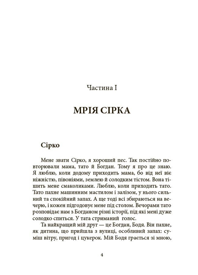 «Мрія Сірка» — це художня книжка для дітей, яка розповідає про сім’ю українського хлопчика Боді, звичайне життя якої змінилося з початком повномасштабної війни. Бодя і його хатній улюбленець Сірко розповідають кожну свою, однак спільну історію про еміграцію, розлуку та повернення, складні випробування для всіх поколінь людей і тварин під час окупації, заздалегідь дорослішання малюка та одинокість дорослих. «Мрія Сірка» — це історія багатьох батьків, які вимушені були змінити свою звичайну життя, прийняти складне рішення рушити назустріч невідомості. Це історія про силу і людяність, про сміливість і надію, а ще про мрії, які неодмінно здійснятимуться. Головне — вірити, триматись разом і не боятися нових випробувань.