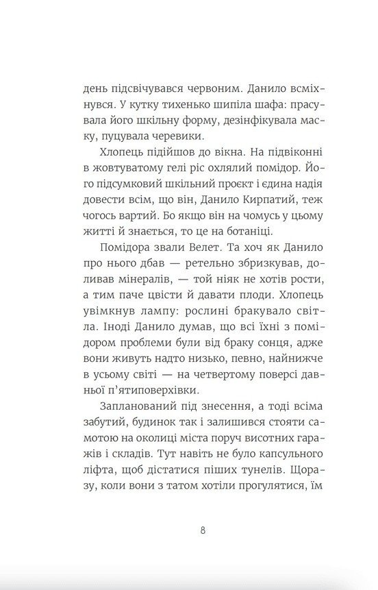 Ця фантастична історія веде читача у таємничий Закамарок, де звичні правила перестають діяти. Хто такі Гнат і Меліса? Куди зникла загадкова Мармизка і які експерименти проводить дідусь у секретній лабораторії? Попереду на Данила чекає знайомство з дивовижними істотами та складні завдання, головне з яких — допомогти незвичайному Велету нарешті вирости.