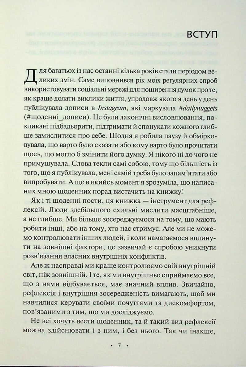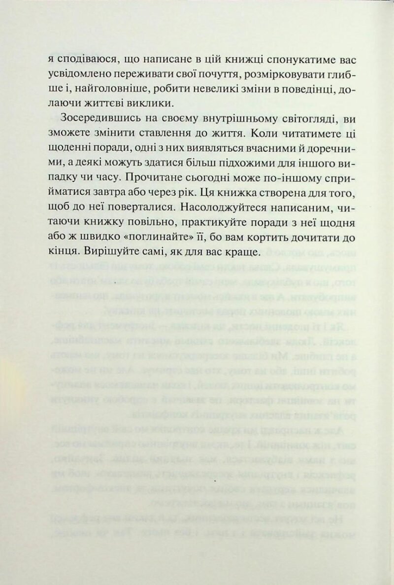 «Поміркуйте про це» – книга, яка надихає на глибше самопізнання і зосередженість на власному розвитку. Авторка запрошує нас змінити погляд на власну життя: замість того, щоб шукати винних чи намагатися контролювати зовнішні обставини, варто звернути увагу на те, що ми можемо змінити в собі, щоб почуватися більш спокійно та гармонійно. У цій збірці ідей для щоденного обмірковування психотерапевтка допомагає навчитися встановлювати кордони, висловлювати свої почуття з ясністю і чесністю, уникати лишньої драми та знаходити радість у простих моментах. Книга стане підтримкою для кожного, хто прагне розвиватися, бути вірним собі та знаходити внутрішній баланс, незважаючи на зовнішні труднощі.