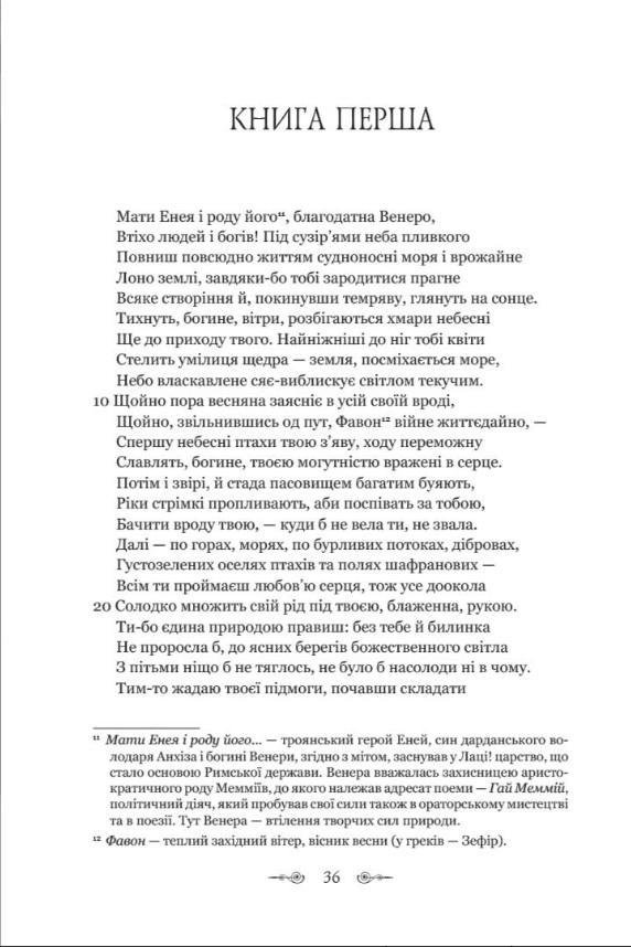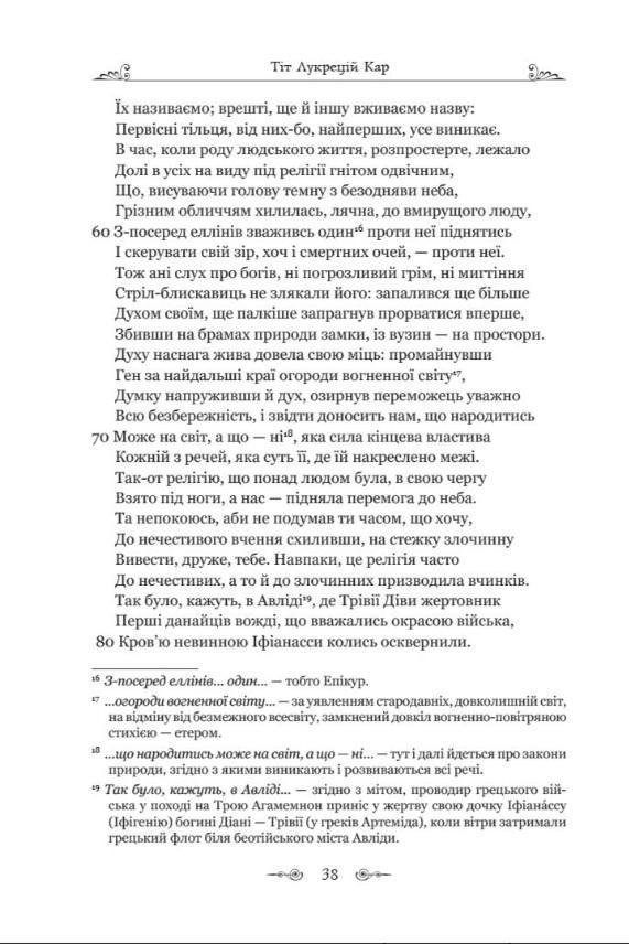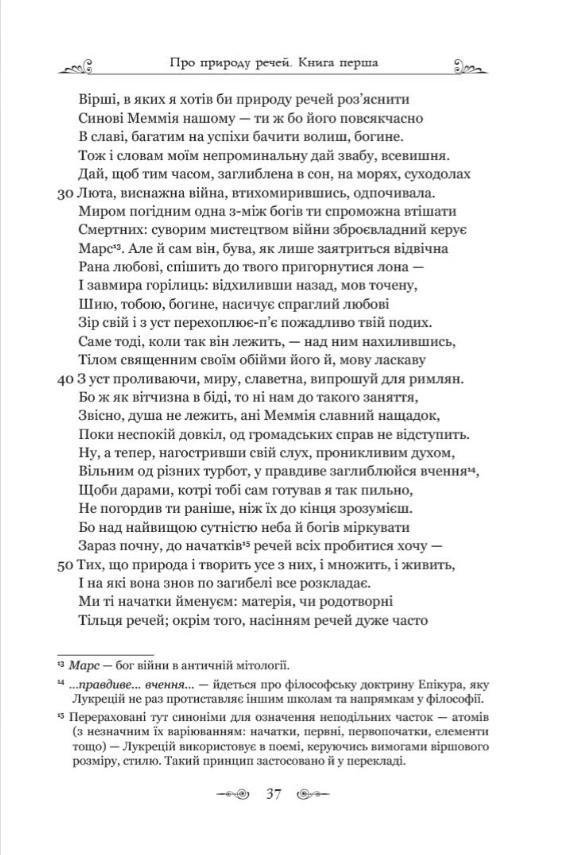 У знаменитій поемі видатного римського поета Лукреція (І ст. до н.е.) «Про природу промов», що є зразком поєднання думки та образу, перед читачем постає величезна картина світобудови та громадської життя, якою його бачили давні мислителі-атомісти. Розвиваючи їх погляди, Лукрецій створив унікальну поему, яка й досі вражає глибиною та широтою мислення її автора, майстерністю художнього письма. Поема справила величезний вплив на розвиток європейської філософської думки. Антоніча.