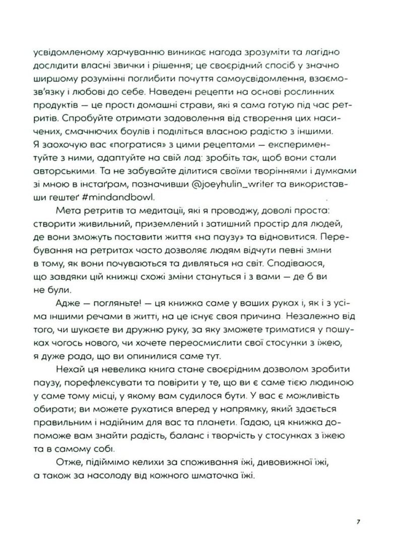 Ця книга — ваше дозвіл видихнути і просто поїсти. Ми звикли, що книжки про харчування щось забороняють: цукор, глютен, радість. Ця книга інша. Вона не буде змушувати вас ставати веганом чи відмовлятися від улюбленого шоколаду. Вона не пропонує дієт, бо знає: ви унікальні, і універсальних рецептів не існує. Це посібник із самоусвідомлення та турботи. Авторка пропонує припинити війну з тілом і почати досліджувати власні бажання. Ви навчитеся будувати здорові стосунки з їжею без почуття провини та складних «мішленівських» технік. Лише прості, яскраві боулі, які наповнюють енергією та любов’ю до себе.