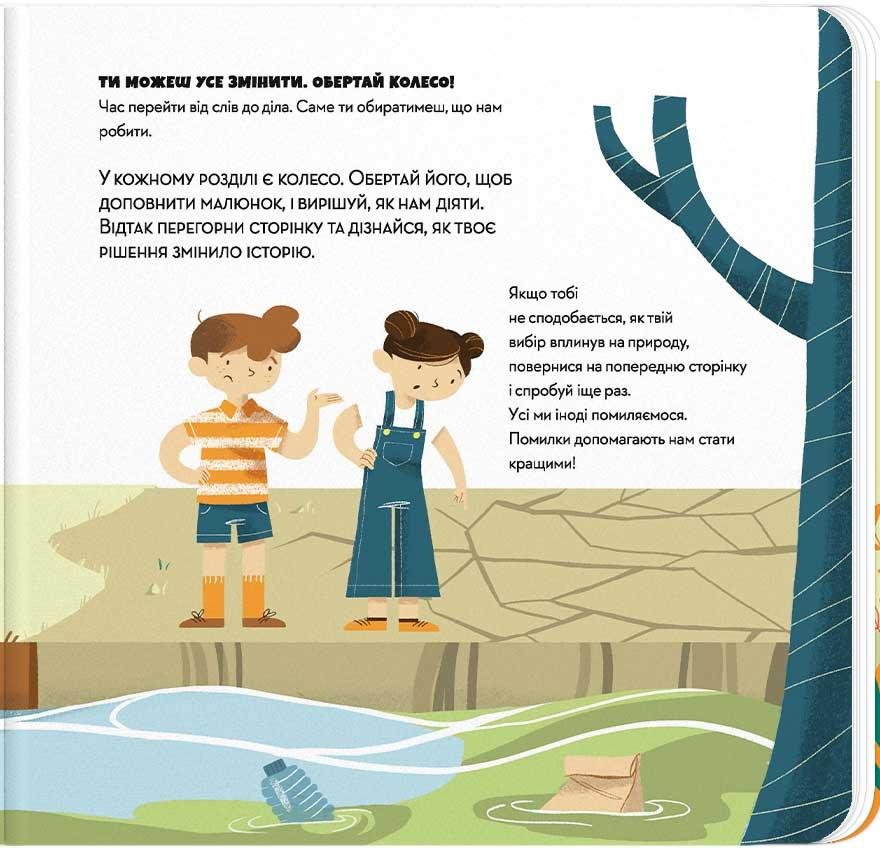 Серія книжок «Рятуй Землю» допоможе дітям зрозуміти, як наші дії впливають на довкілля. На кожній сторінці після пояснення ситуації діти за допомогою інтерактивних коліс зможуть побачити результат свого вибору та оцінити, як він впливає на планету. Завдяки книжкам серії діти почнуть розуміти, як ми можемо допомогти Землі, та застосовувати нові навички у повсякденні.