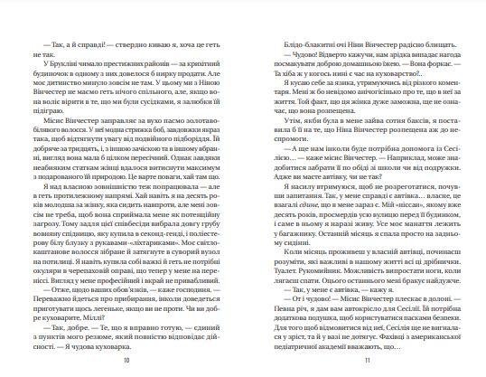 Міллі Келловей утомилася жити в автівці та харчуватися сандвічами, тому радо погодилася працювати служницею у Вінчестерів. Відтепер у неї буде своя кімната, пристойна зарплатня і з’явиться шанс нарешті змінити життя. У Міллі є таємниця, яку вона старанно приховує. Але жінка навіть не підозрює, чого не розголошують її роботодавці. Щодня Міллі наводитиме лад у будинку, готує смачну їжу, пере, але стосунки з дуже знервованою Ніною Вінчестер напружені. Згодом Міллі дізнається про неї дещо, від чого в жилах збагне дах. Невже ця жінка здатна на таке? І як Ендрю Вінчестер, цей просто ідеальний чоловік, вживається зі справжньою психопаткою? Коли Міллі збагне, що потрапила в ловушку, буде вже запізно.