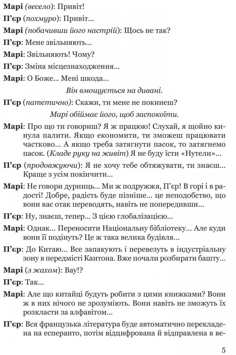 Жан-П’єр Мартінес (Jean-Pierre Martinez), відомий сучасний французький письменник, співає та драматург, а також вчень-семіотик. Він написав кілька романів, близько 100 сценаріїв для телебачення та понад 90 театральних п’єс. Його п’єси були перекладені англійською, іспанською, португальською, німецькою та іншими мовами і багаторазово поставлені на сценах не тільки у Франції, а й в інших країнах Європи, Латинської Америки, США і незмінно користуються неабияким успіхом. Чудовий знавець людської душі, Жан-П’єр Мартінес у своїх творах розкриває її потаємні (часом неприємні чи дивні), трагікомічні сторони, завжди з надзвичайною добротою та остроумним гумором, завдяки чому ці п’єси сприймаються глядачем (або читачем) з великою зацікавленістю. Творчість цього непересічного майстра драматургії, на жаль, досі зовсім не була відома в Україні. Ця збірка п’яти його найвідоміших п’єс вперше дає читачам змогу з ними ознайомитися з перспективою представлення їх і на українських театральних підмостках.