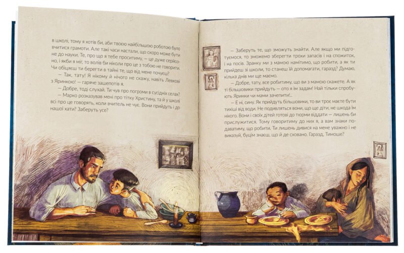 Як пояснити дітям трагедію минулого, не загасивши в них віру у добро? Ця книга робить це через історію дев’ятирічного Тимоша. Коли світ навколо стає жорстоким, хлопчик находити в собі сили дбати не лише про рідних, а й про сусідських дітей. Річка Ятрань, що колись була місцем розваг, стає мовчазним свідком боротьби за життя. Авторці вдалося делікатно, але правдиво розповісти про Голодомор через призму дитячого сприйняття. Це розповідь про згуртованість українців, яка допомогла вистояти. Глибокий текст доповнюють проникливі ілюстрації Людмилі Стецькович, що перетворюють видання на важливий урок історії та емпатії для юних читачів.
