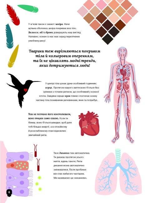 Це не проста книга про людське тіло. У ній немає довгих, складних описів, скорочень, хитромудрих термінів. Натомість таємниці людського тіла розкрито за допомогою ІНФОГРАФІКИ — поєднання ілюстрацій та схем. Все просто і зрозуміло — достатньо одного погляду, щоби почувати себе експертом! І це ще не все: ти дізнаєшся багато дивовижних фактів не лише про людей, а й про тварин!