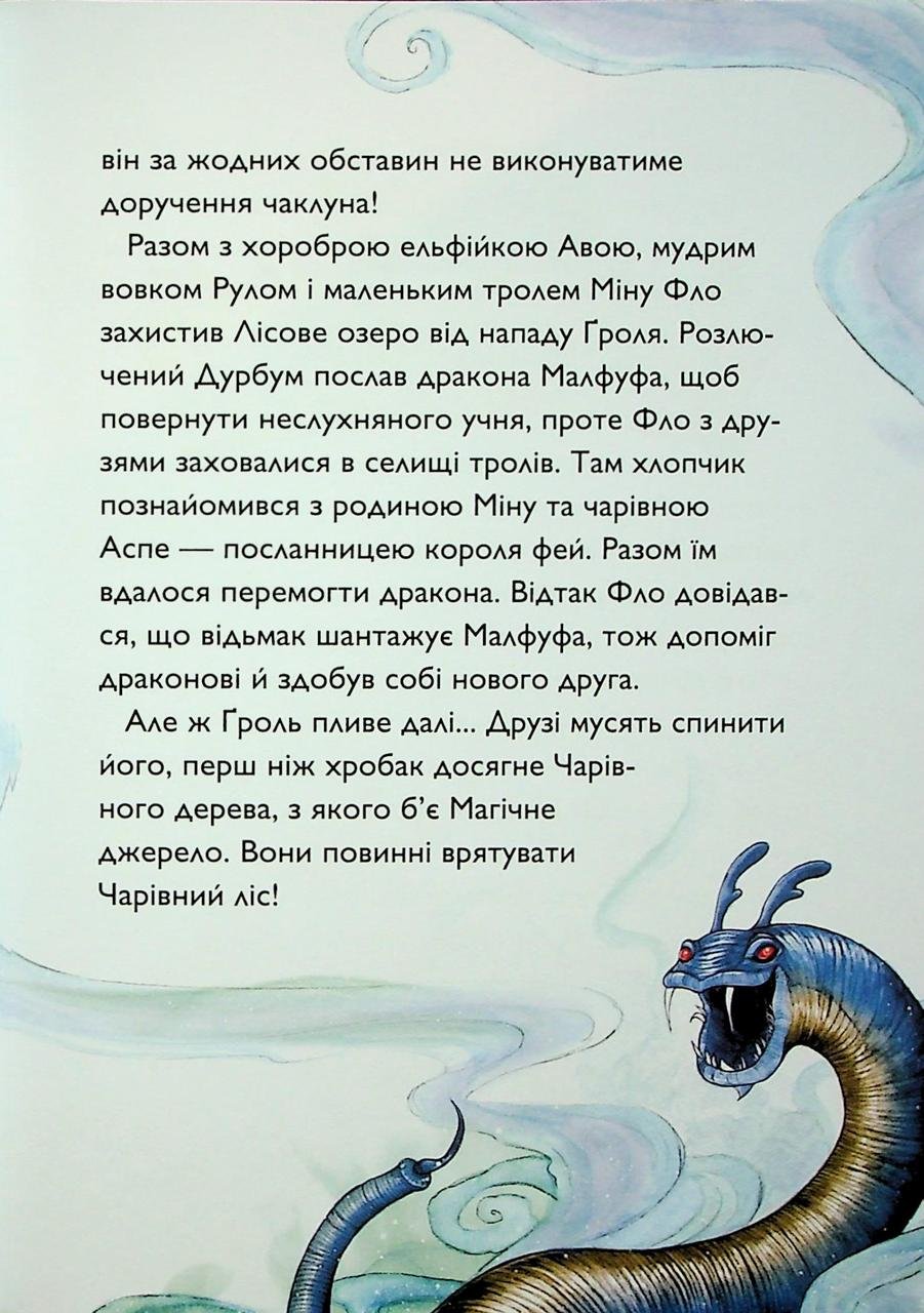 Обезпека для Чарівного лісу досі не минула: велетенський Ґроль майже дістався до Магічного джерела, і одна мить може вирішити долю всіх його мешканців. Ельфи, тролі та інші істоти, що оберігають цей край, готуються до останнього протистояння. Та навіть їхньої хоробрості недостатньо, коли проти них стоїть темна й крижана сила Дурбума. Все залежить від Фло — хлопця, який ще вчора був лише учнем чаклуна, а сьогодні став єдиною надією для цілого світу. Ліс шепоче йому підказки, і Фло повинен навчитися чути його голос, а головне — повірити, що сила може йти не від закляття, а зсередини самого серця. Ще не до кінця розуміючи своє справжнє призначення, Фло поступово усвідомлює: саме він є тією ланкою, яка здатна об’єднати різні народи Чарівного лісу та змінити хід битви. І можливо, саме в мить найбільшої опасности він відкриє, ким є насправді.