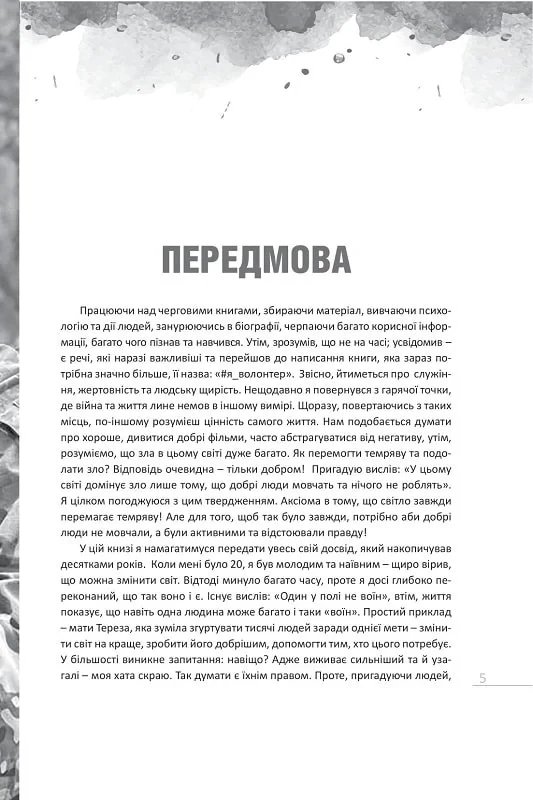 У книжці йдеться про служіння, жертовність та людську щирість. Нещодавно я повернувся з гарячої точки, де війна та життя лине ніби в іншому вимірі. Щоразу, повертаючись з таких місць, інакше розумієш цінність самого життя. Нам подобається думати про хороше, дивитися добрі фільми, часто абстрагуватися від негативу, втім, розуміємо, що зла у цьому світі дуже багато. Як перемогти темряву та здолати зло? Відповідь очевидна – тільки добром! Ми повинні чітко усвідомити, що наша свобода, можливість жити та обирати — завдяки воинам, які пожертвували собою. Я розумію, що волонтерство – це лише невелика частинка шани та дяки тим, хто віддав найцінніше – життя!
