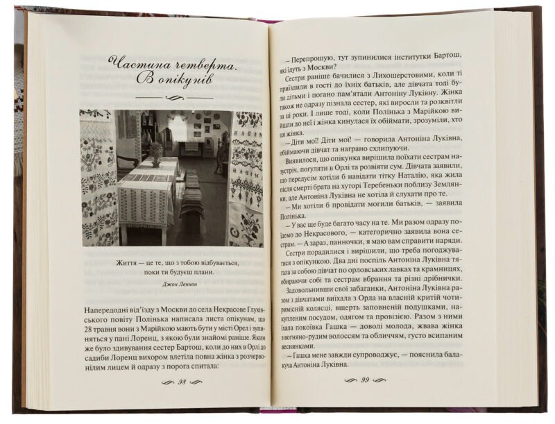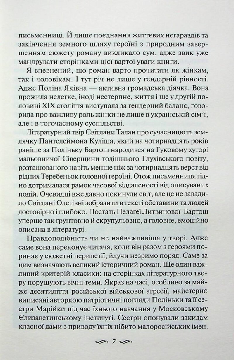 Третого жовтня 1833 року на хуторі Теребеньки, що на Глухівщині, у батьківщині Бартошів народилася прекрасна дівчинка Пелагея. В історію вона увійде під прізвищем чоловіка як Пелагея Яківна Бартош-Литвинова, етнографиня та фольклористка. Не маючи великих статків, владних покровителів, дворянського статусу, вона відкриє школу, самостійно створить для неї підручники, опубликує кілька альбомів народних візерунків, стане членом-кореспондентом Парижського антропологічного товариства, збереже для наступних поколінь пам’ять про народні вірування, пісні, ремесла. Зараз новонароджена Полінька, як її нежно називає мама, захоплено дивуватись на світ. А батьки бажають їй тихої щасливої долі.