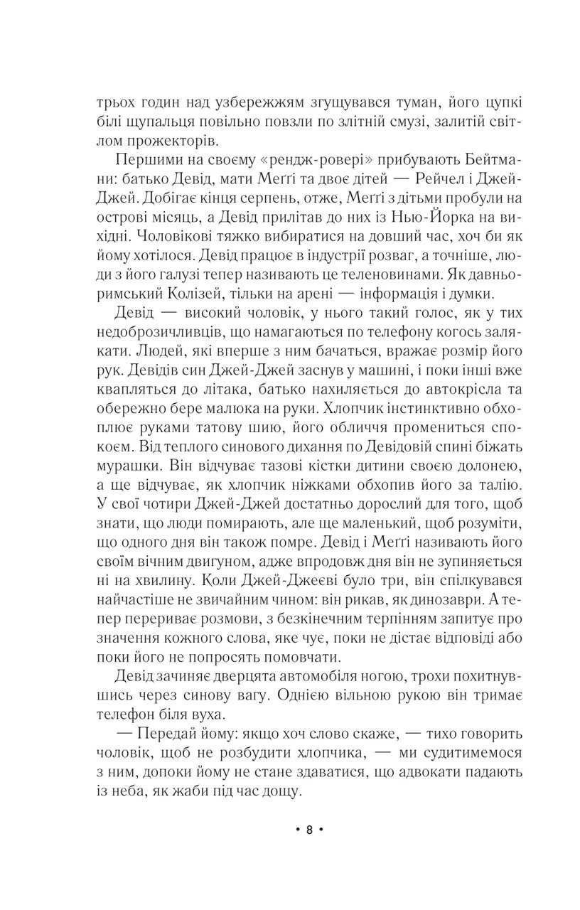 Неподалік від узбережжя Нью-Йорка трапляється трагедія — приватний літак падає просто в океан. Зі всіх пасажирів виживають лише двоє: маленький хлопчик Джей-Джей, син знаменитого медіамагната, та Скотт Барроуз — художник, чия присутність на борту була чистою випадковістю. Вони дивом дістаються берега, але врятуватися від хвилі уваги не вдається: преса роздирає подробиці катастрофи, громадськість шукає винних, а спецслужби намагаються з’ясувати, чи це було несчастним випадком — чи чимось набагато темнішим. Поступово з’ясовується, що кожен із загиблих мав свою історію, свої страхи, мотиви та таємниці. Фінансист, чия кар’єра трималася на брехні; батьківщина, яка приховувала особисту драму; екіпаж, який міг знати більше, ніж здавалося. Усі їхні життя переплелися в ту саму мить, коли літак упав біля моря. Це не просто трилер — це тонка психологічна драма про випадковість і провину, про те, як один політ може змінити десятки доль. Автор повільно, але без помилок підводити читача до істини, змушуючи замислитися: завжди катастрофи починаються в небі?