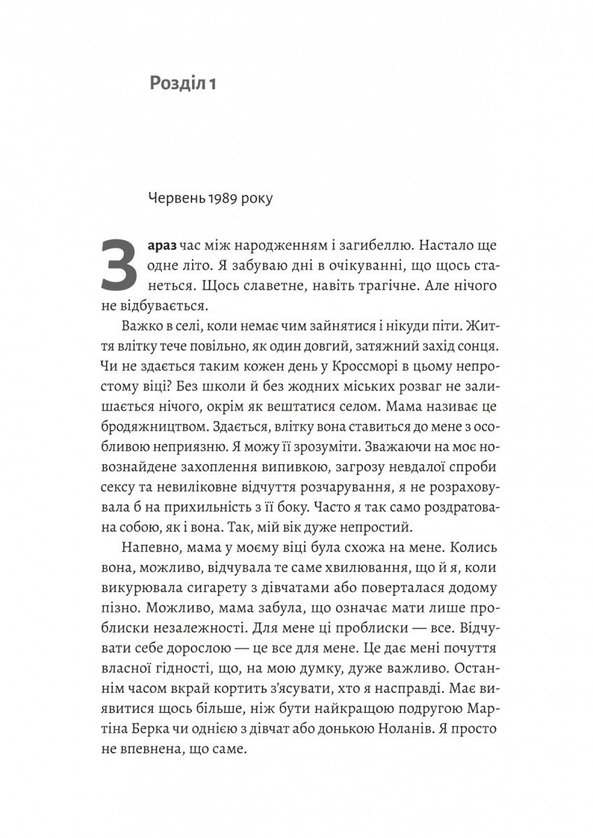 Дві життя. Дві дороги. І одна правда, яку неможливо сховати. Люсі — чужа серед своїх. У маленькому консервативному містечку, де частка жінки розписана наперед, вона відчуває себе акторкою на чужій сцені. Її “сценарний” партнер – дбайливий Мартін, мрія кожної дівчини. Але її справжня драма розгортається за кулями, в обіймах подруги Сюзанні. Це глибокий психологічний роман про страх бути іншим. Люсі будує стіни з мовчання та недомовок, намагаючись вберегти своє хрупке щастя від осуду сусідів. Проте закінчення школи ставитиме її перед невідворотним фактом: неможливо жити наполовину. Щоб знайти собі, їй доведеться розбити чиєсь серце — можливо, навіть своє власне.