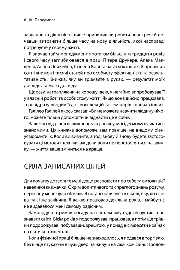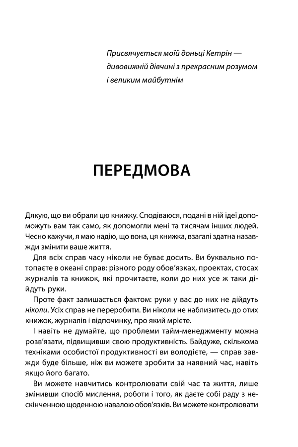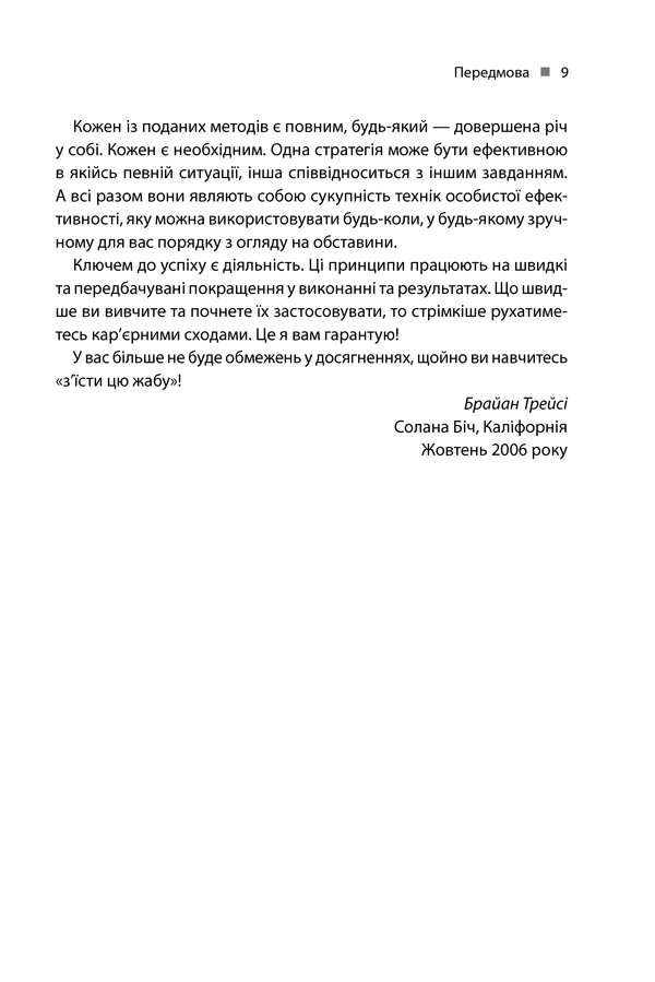 • Оновлене та доповнене видання • Перекладено 40 мовами • Продано понад 1 200 000 примірників • Наведено результат більш ніж тридцятирічного вивчення проблем розподілу часу • Наведено 21 практичну пораду, які можна застосувати негайно! Брайан Трейсі — професійний лектор, консультант, голова Brian Tracy International, мільйонер, провідний фахівець у сфері особистісного розвитку, на прикладі своєї життя доводитиме, що бути успішним можливо, причому в будь-якій сфері. Головне — навчитися правильно планувати свою годину та організувати роботу, концентрувати увагу на найголовніших завданнях, прагнути досягти найкращих результатів у всіх справах, визначати пріоритети, не лінуватися та взяти за правило доводити все розпочате до кінця.