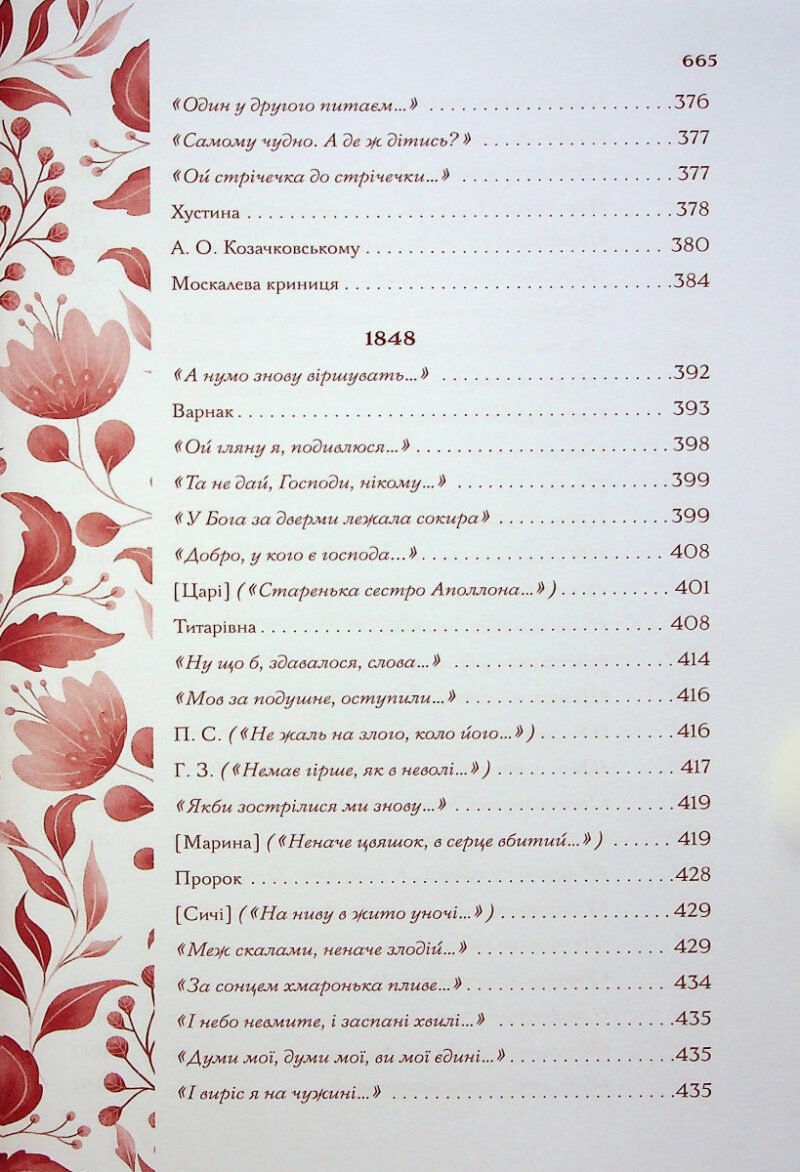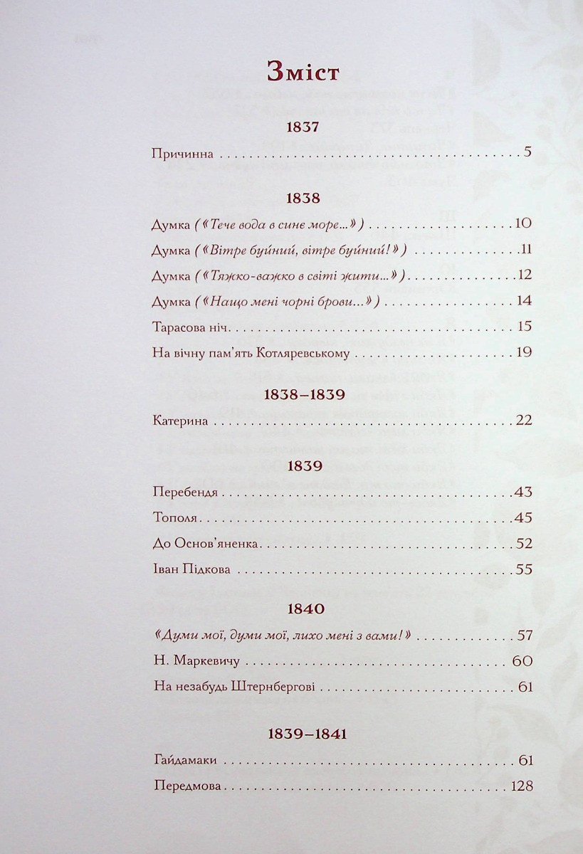 Тарас Шевченко, вічний Кобзар, що торкається струн душі кожного українця. Його вірші знайомі нам з дитинства, його творчість досі викликає багато дискусій, щирі захоплення і знаходить безліч шанувальників за межами нашої країни. Свої переживання митець умів переносити на полотно, але саме малювання словом звеличило його як генія українського народу. Ця книжка — збірка вічних перлин української поезії зі спадщини Тараса Шевченка. У цих віршах — усе, що хотів сказати світові Кобзар, усе, чим він живий, що любив і чого прагнув. Простота і мудрість, душевна щирість і глибокий зміст у словах Шевченка не загубилися в часів часу і зараз поезією промовляють до нас.