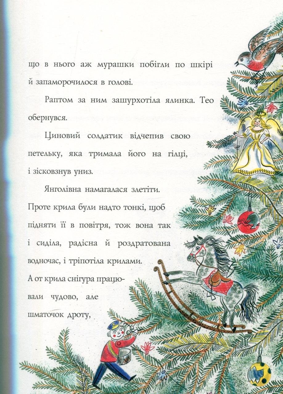 Ця книга — ніби вінтажна ялинкова оздоба. Класичне поєднання кольорів. Обкладинка із текстурного дизайнерського картону кремового кольору з яскравими червоними написами. Золоте тиснення на всю площу обкладинки — з лицевого та зворотного боків. Під мерехтливим сяйвом гірлянд буде справжнє диво! Дуже затишні ілюстрації та тепла різдвяна історія. Одного разу на Святвечір Тео, який залишився вдома з нянькою, побачивши біля вікні дивну зірку. Він вирішив загадати бажання. Тео побажавши, щоб у нього з’єднання з’явилися друзі. А вже за мить на ялинці почали розгойдуватися й спускатися різдвяні прикраси, готуючись зчинити невеликий розгардіяш…