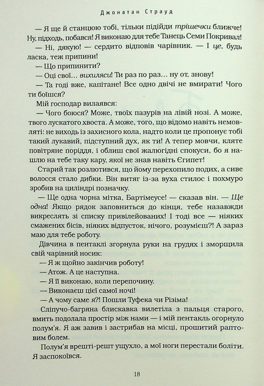 Події цього захоплюючого роману переносять читача у величний та небезпечний Єрусалим годин царя Соломона, де магія є такою ж буденною справою, як і палацові інтриги. У центрі історії опиняється наш давній знайомий — саркастичний і могутній джин Бартімеус, який переживає далеко не найкращий годинник. Через прикрій збіг обставин славетний дух змушений виконувати принизливу роль раба і будувати стіни храму, що є справжнім образом для його гідності та таланту. Проте рутинне існування закінчується в ту мить, коли до міста прибуває таємнича дівчина з місією, яка здається неможливою. Вона планує вчинити замах на самого володаря Персня — магічного артефакту, що дарує своєму власнику необмежену владу над світом духів. Бартімеус мимоволі опиняється втягнутим у цей смертельний вір подій, де на кону стоїть не лише його свобода, а й життя. Ситуацію ускладнює масштабний змов сімнадцяти могутніх чарівників, які керують найлютішими демонами і прагнуть змінити світовий порядок. Щоб вижити в цій небезпечній грі, джину доведеться використати весь свій арсенал магічних трюків та майстерність перевтілення.
